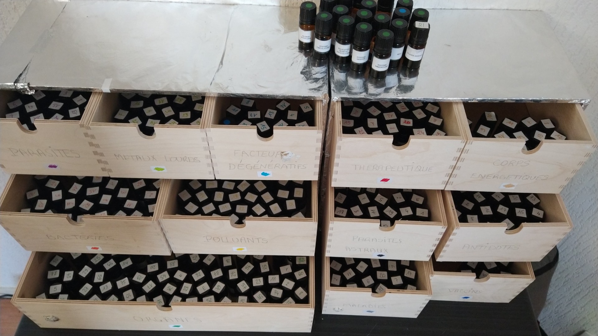 Je poursuis ensuite, par une prospection approfondie des agents pathogènes (parasites, virus, bactéries, polluants, métaux lourds, virus… sous forme de fioles fréquences) qui sont en cause dans les organes en dysfonctionnement.